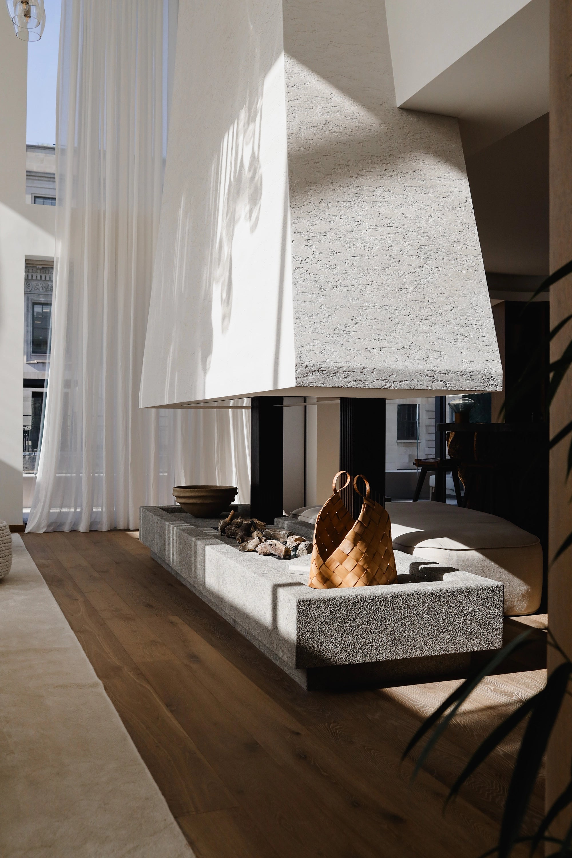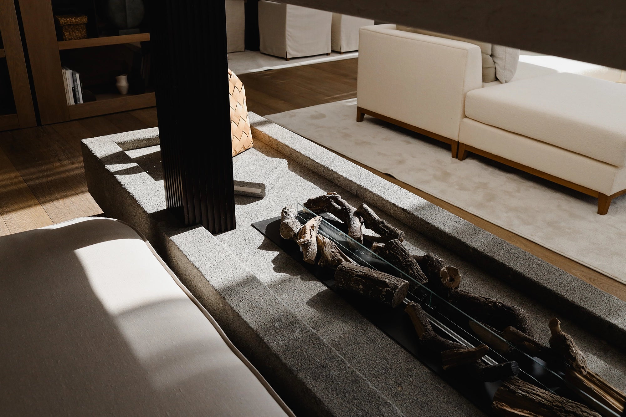 Additionally we supplied what looked like a huge solid chunk of Peperino for the central feature of the living space. For reasons mainly based on weight, it was actually formed using 20mm slab, glued and mitred, then heavily textured and ‘roughed up’ by our masons to recreate the architect’s vision.