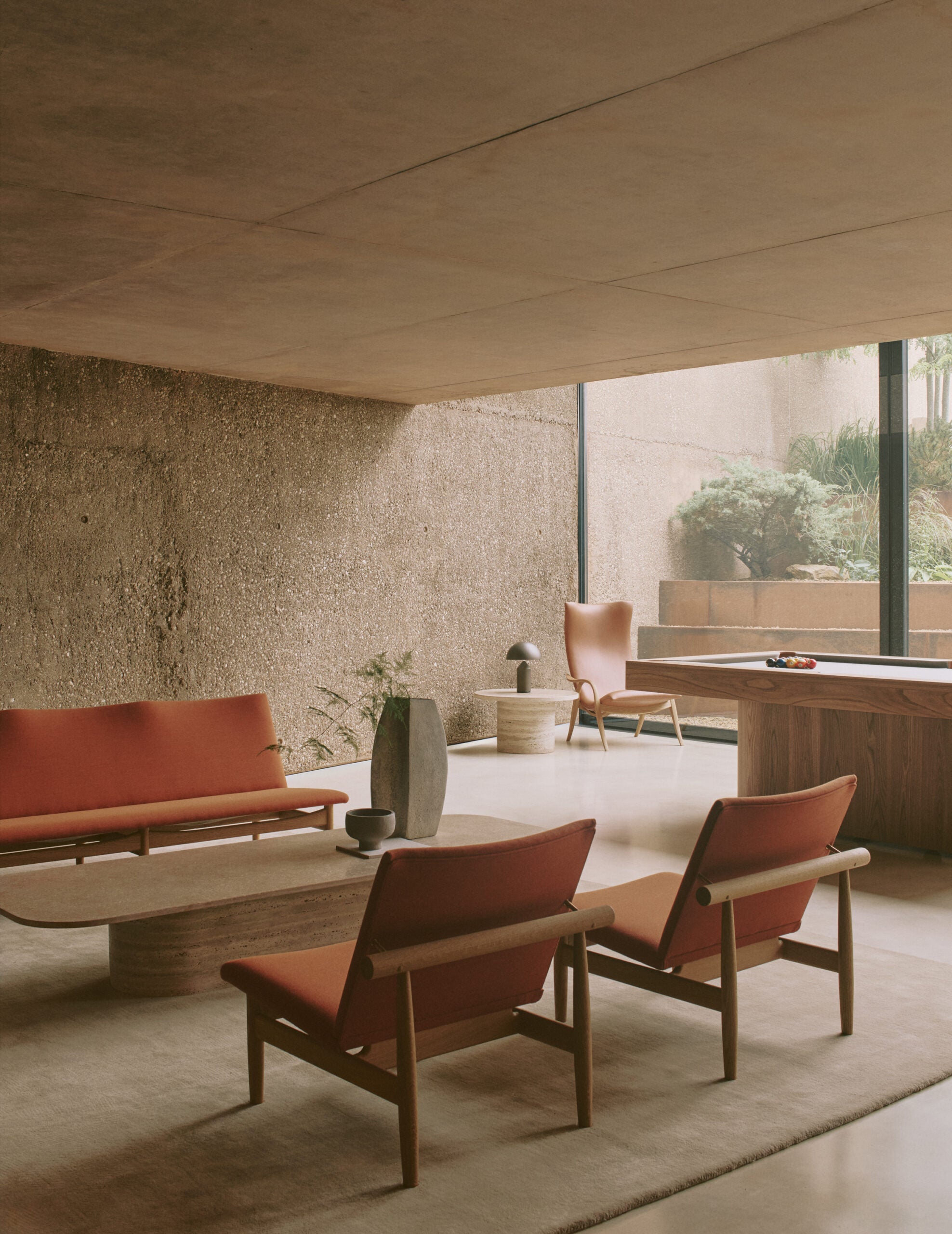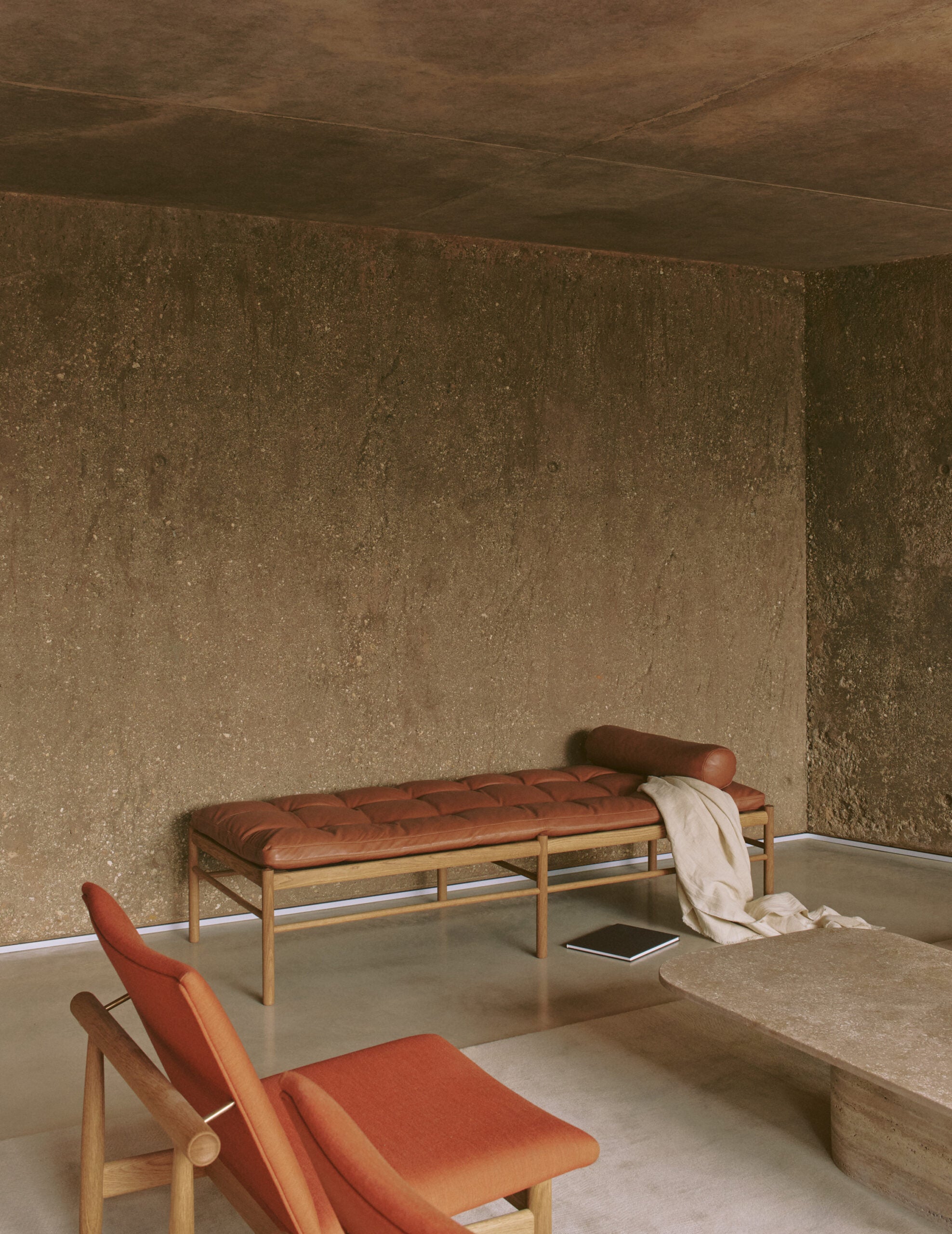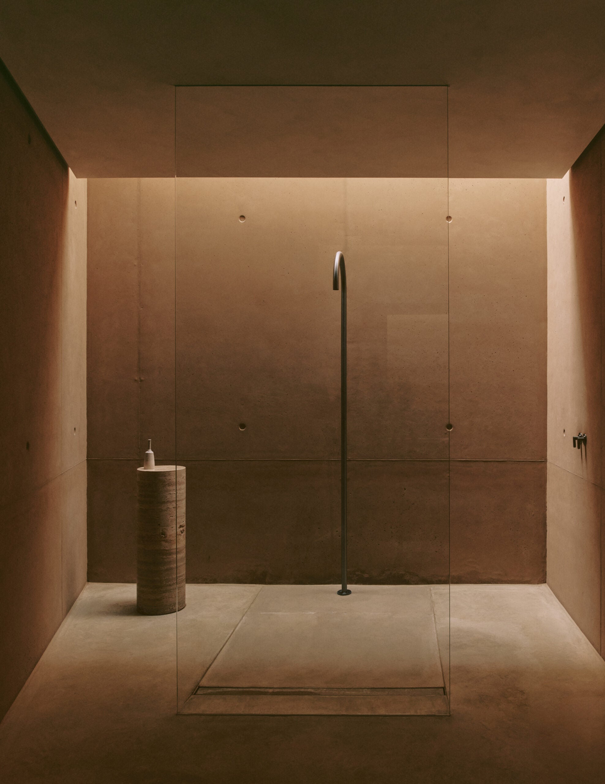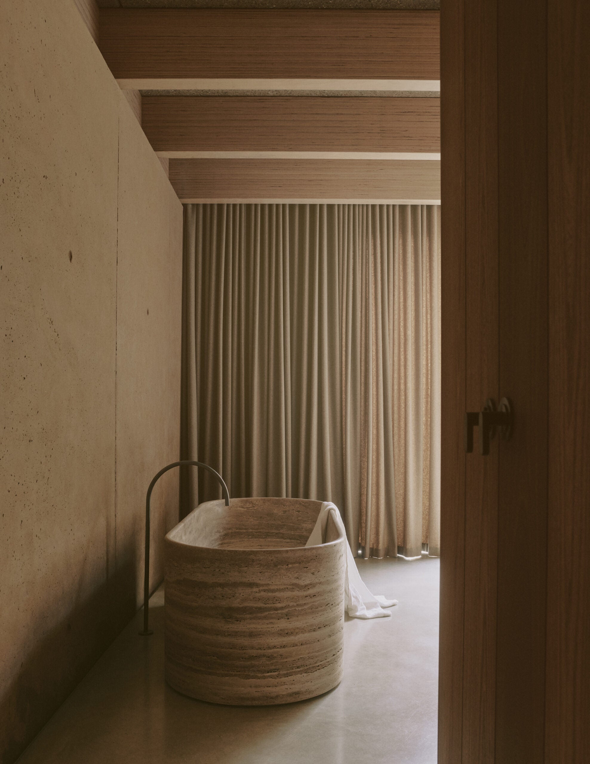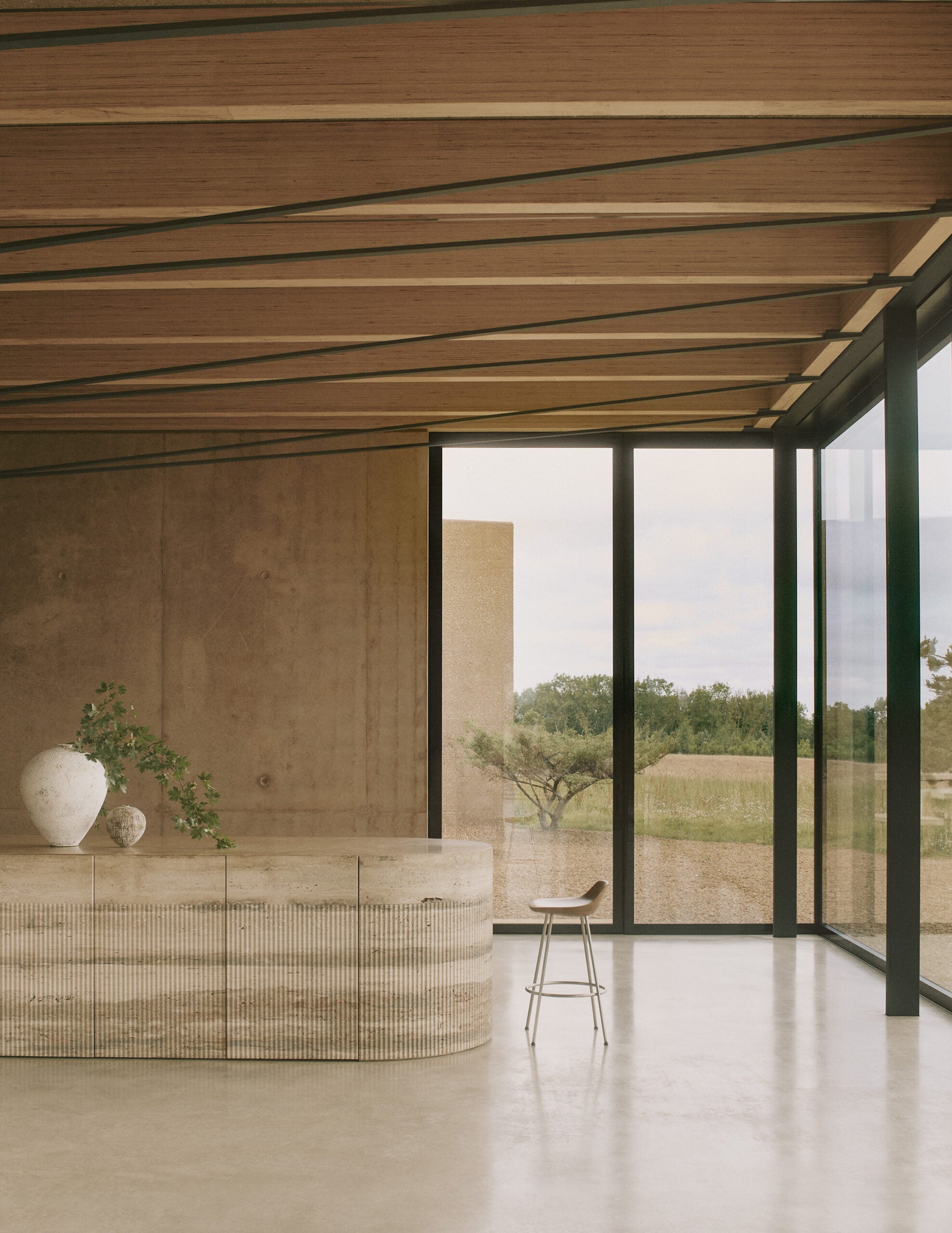 The search started with a red travertine, from Iran but ended in Italy when one of our travertine specialists suggested a specific bench of a type of Noce Travertine from a quarry in Tivoli. In addition to the colour, we were to also try to find a travertine with very defined banding and this box was well and truly ticked by the chosen material with colours from cream to black as well as essential earthy browns.