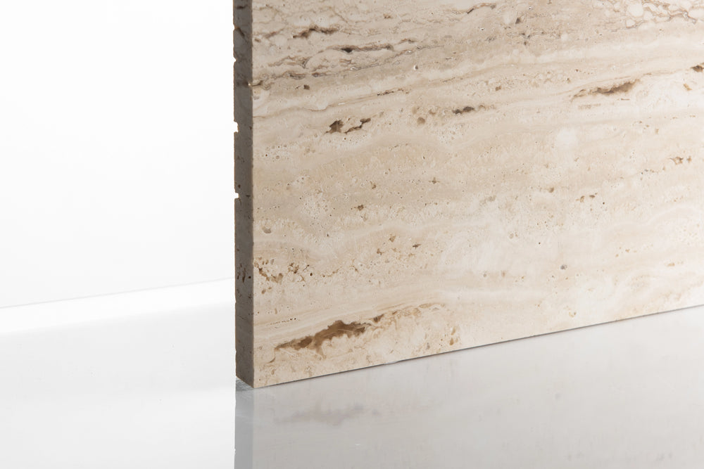 This exceptionally popular white travertine took time to find and only with a very particular architect looking for a special travertine for a large commercial space did we unearth this gem. It now plays a central role in our travertine collection and we hold slabs in London, also Italy as well as blocks. When honed and clear resin filled it makes the very best of the colour, structure and voids.