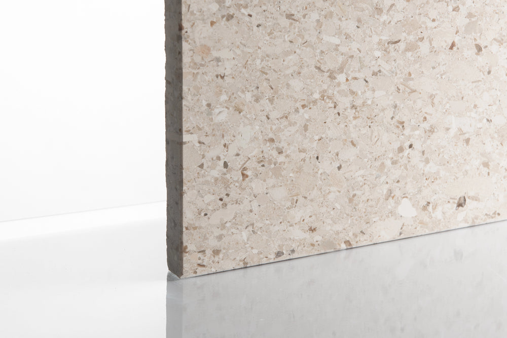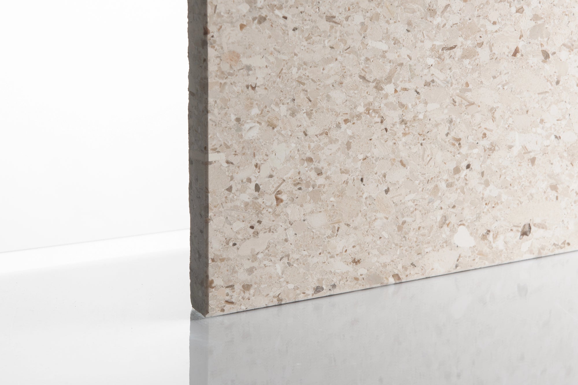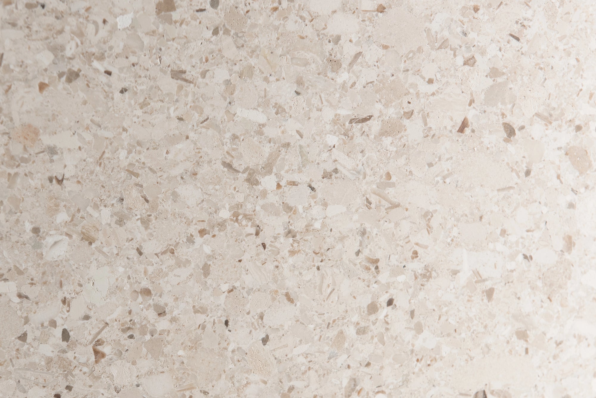 Acquerello is a hard limestone, and in a honed finish a structure almost terrazzo like. A cold cream base colour with flecks and pebbles sandwiched together consistently across it's surface. It's a durable, frost resistant limestone, good both inside and out. Its the coarsest selection of the three stones we offer from the same quarry.  The low honed finish achieves a mighty 40 PTV in wet conditions! This is an incredible result.