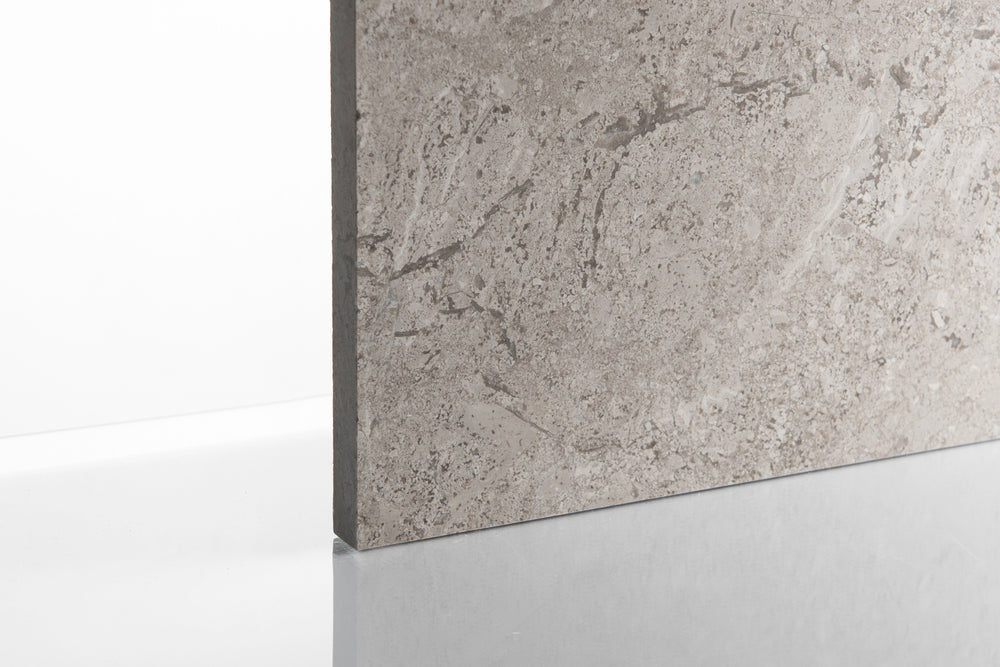 Definitely one of our most popular limestones for the last 10 years. The warm grey hue works with so many colour combos. The definitive strata and quartz veins provide the drama, suitable for any internal application. With big slabs in stock its ready to go.