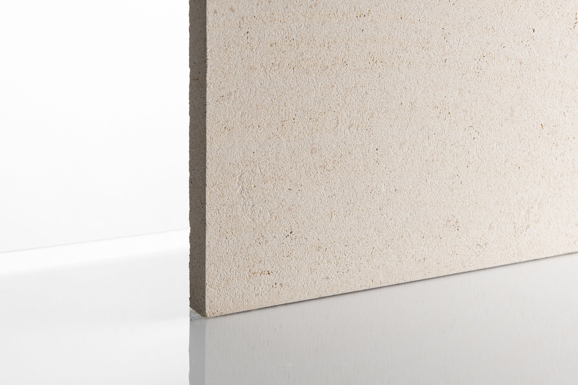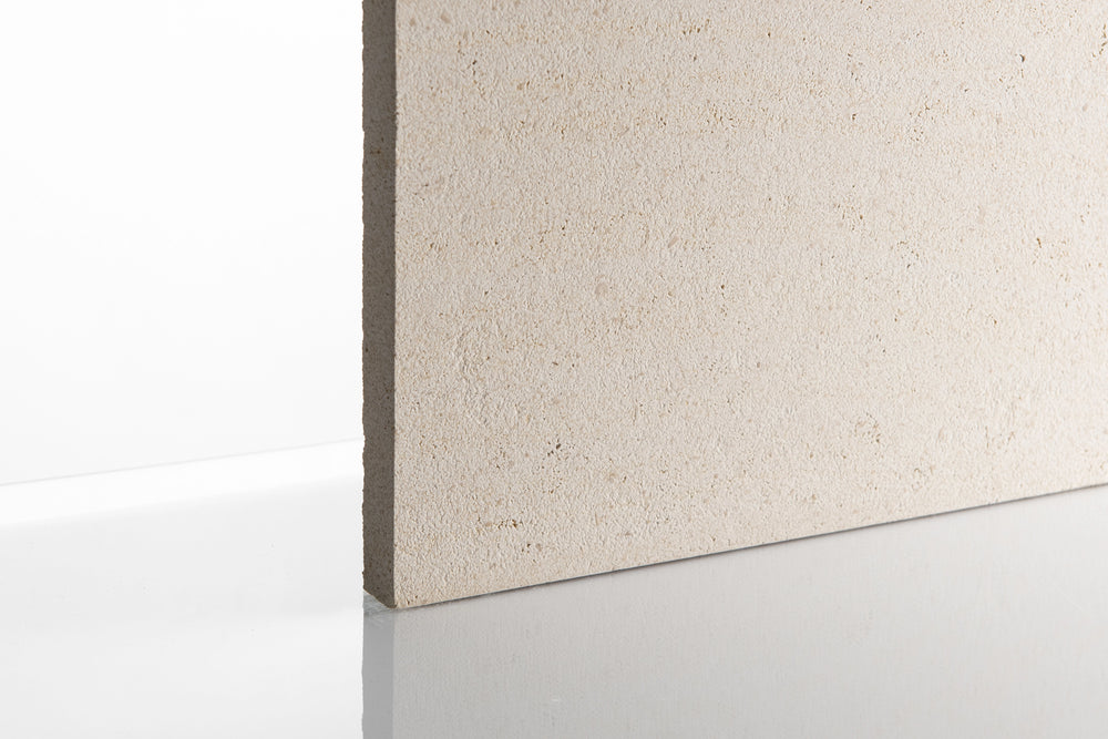 This limestone is not only a classic limestone with its creamy white colour, relaxed open pores and organic vibes but it impresses with its technical capabilities and longstanding project history too. Technically, it has good frost resistance, backed up by installations over 100’s of years. It also has a good slip resistance in both bush hammered and brushed, and honed (60 grit). So this means there is no need for using the more aggressive mechanically applied texture for slip reasons, keeping the colour, structure and clean-ability.