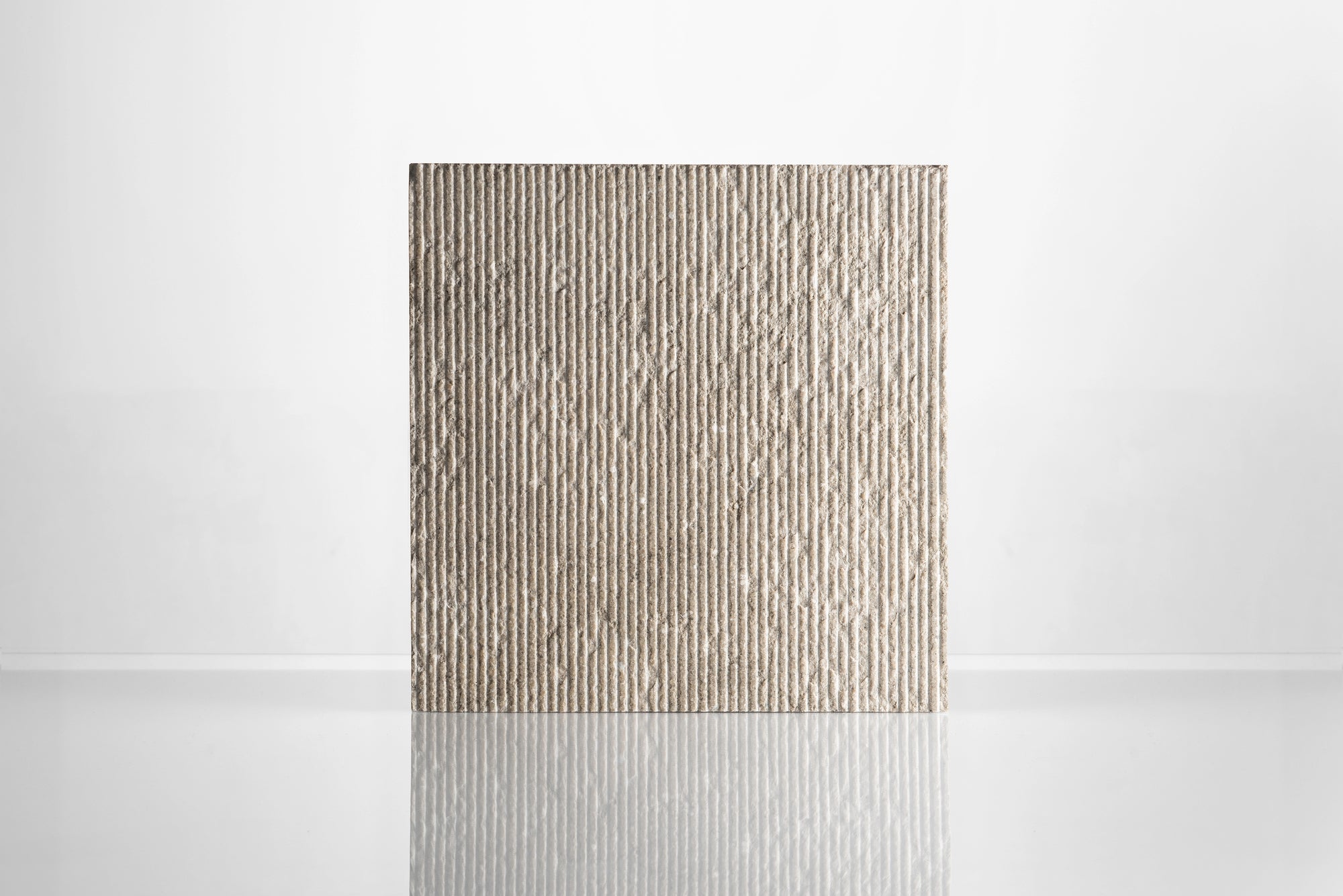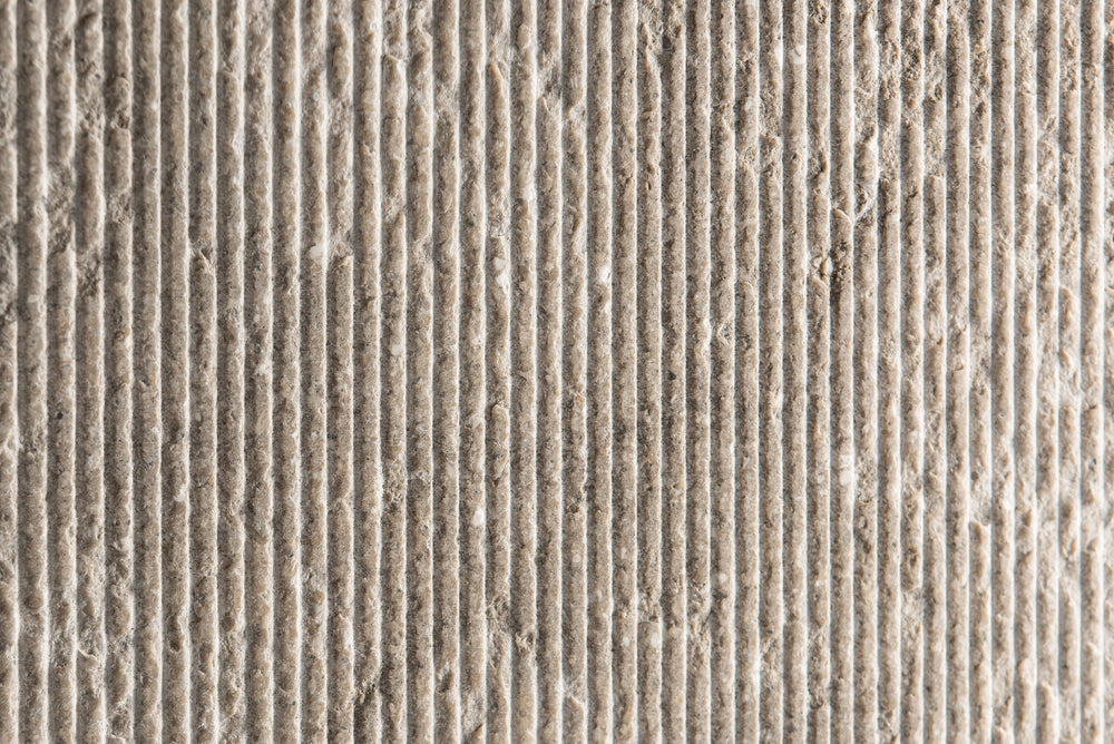 A beautiful but very simple limestone. Green grey, covered with creamy white fossils. Its a stone that seems to lend itself so effectively to many surface finish options. From the stripped back diamond sawn finish to fine chisel, the deepest textures, sandblasting and flaming. Durable, frost proof for internal or external project, and stocked here in London in big slabs for bespoke work.